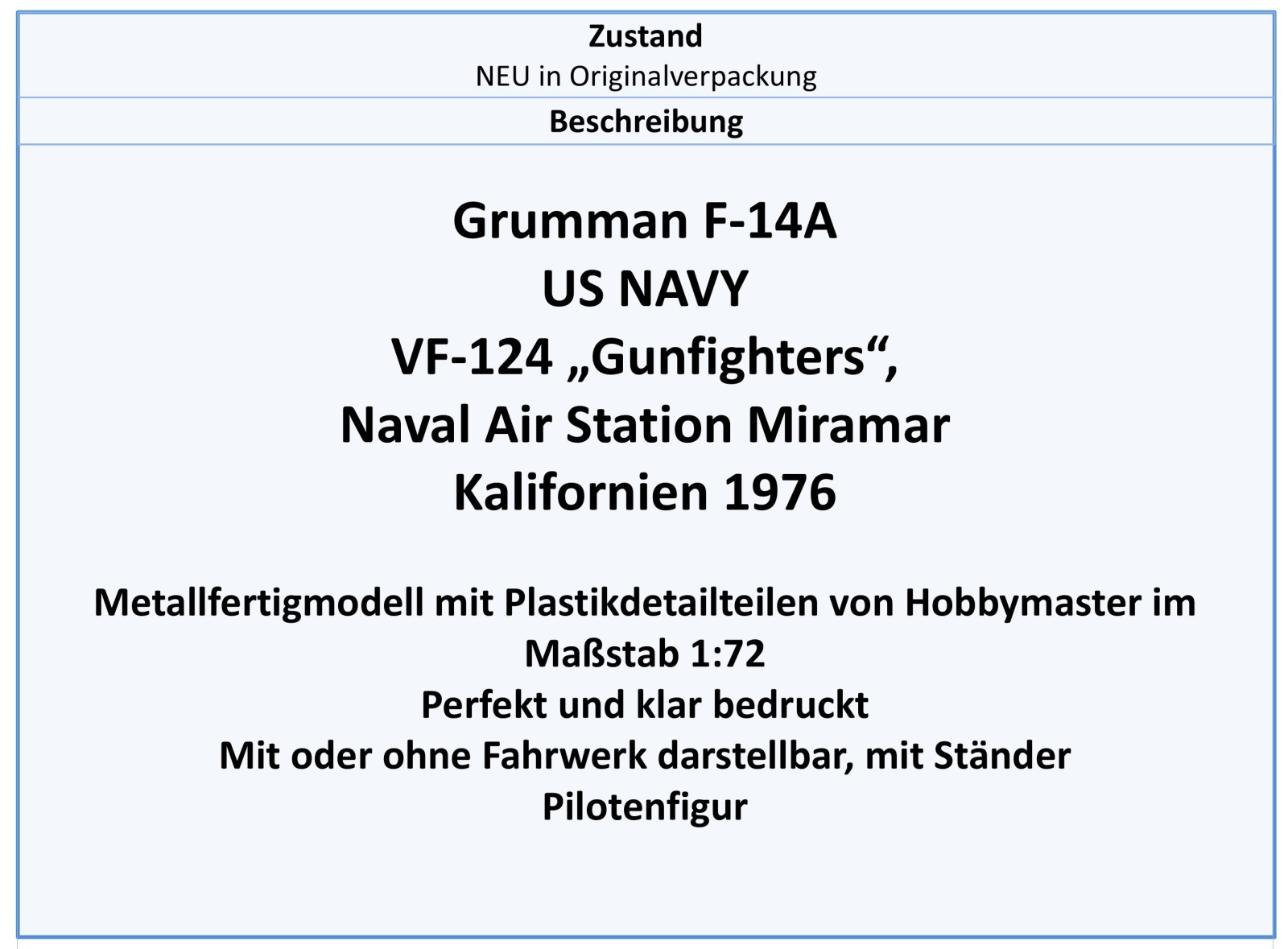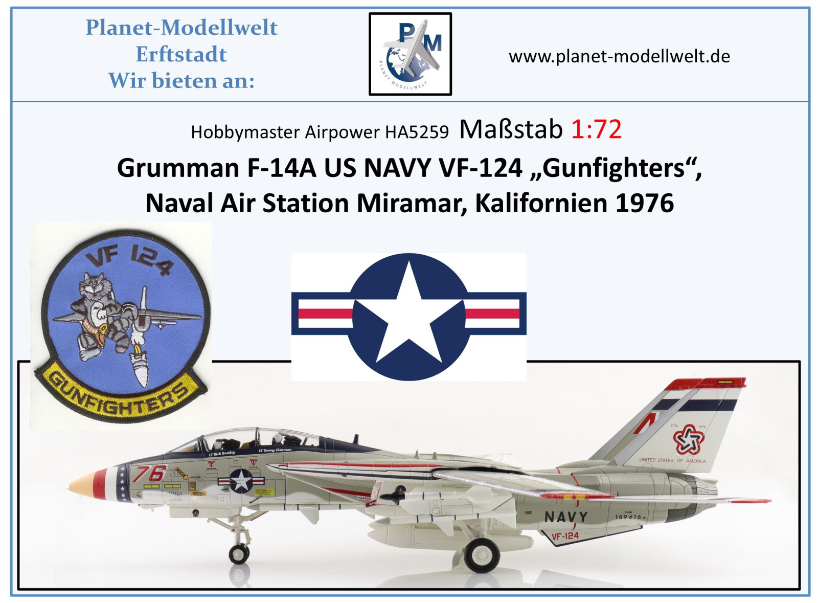 HA5259 F-14A Tomcat VF-124 "Gunfighters" 1976,Hobbymaster 1:72, NEU 08/25