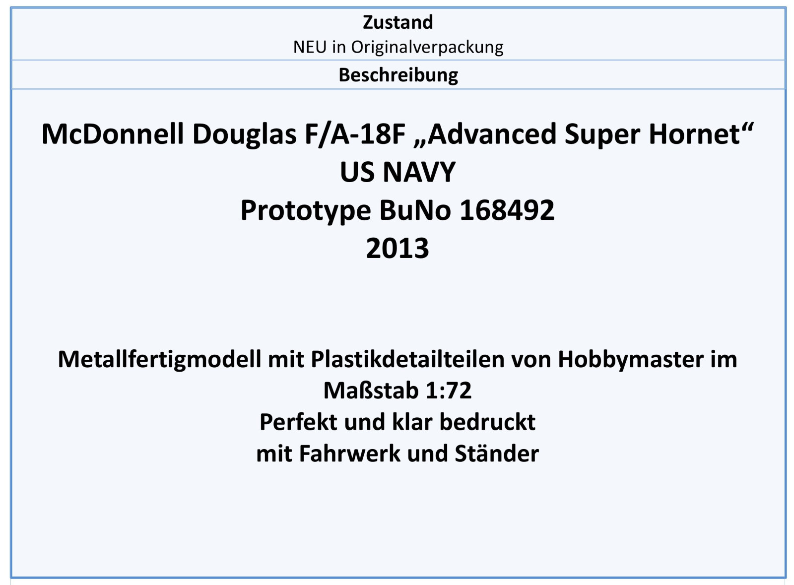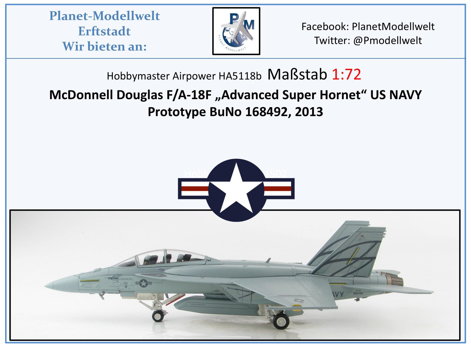 HA5118 F/A-18F Advanced Super Hornet US NAVY Prototyp 2013,Hobbymaster 1:72 NEU