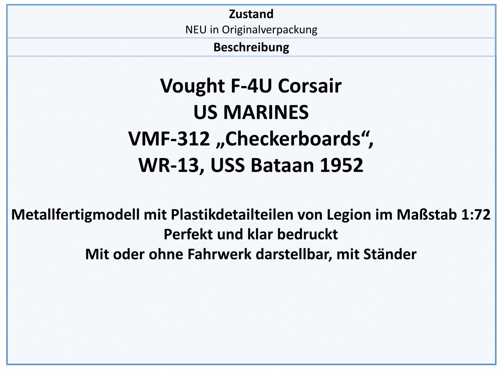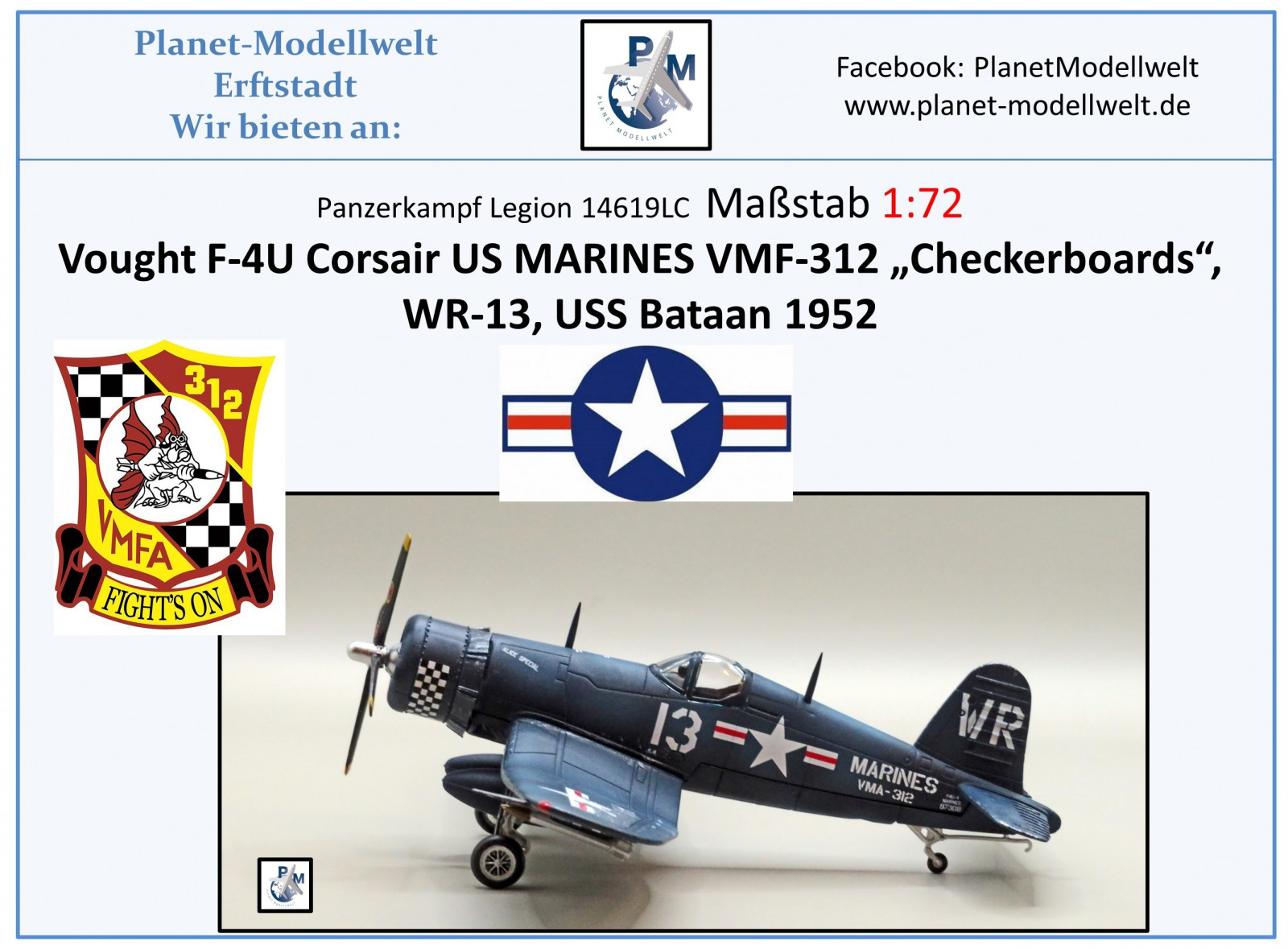 14619LC F-4U Corsair USMC "Checkerboards",1952, Legion 1:72 NEU 1/25