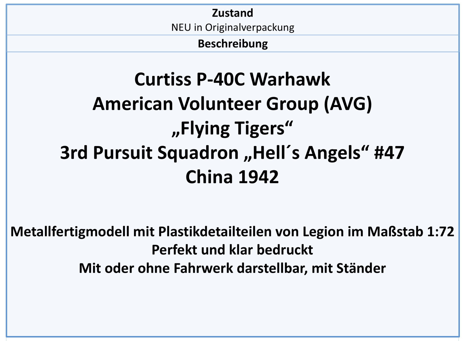 14623LD P-40C Tomahawk "Flying Tigers" 3rd Squ #47,Legion 1:72,NEU 2/2026