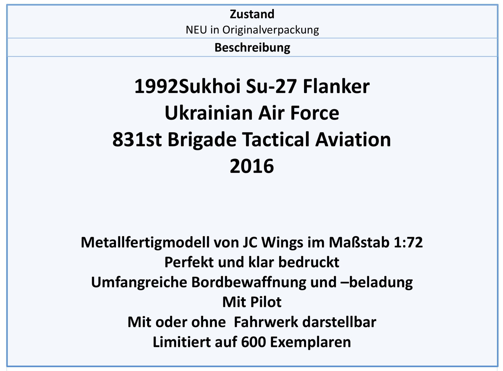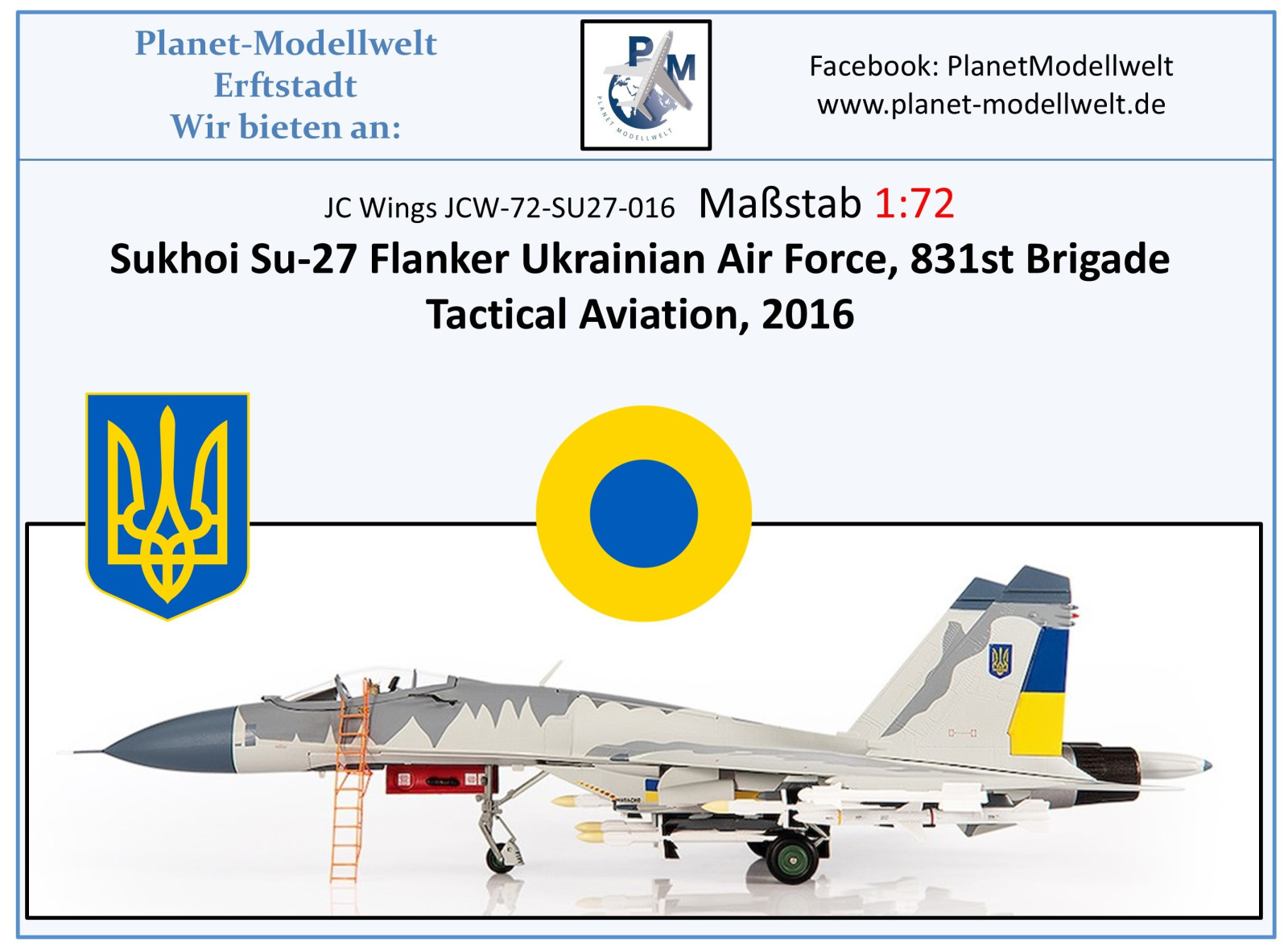JCW-72-SU27-016 SU-27 Flanker Ukraine Air Force 2016, JC Wings 1:72, NEU 02/26