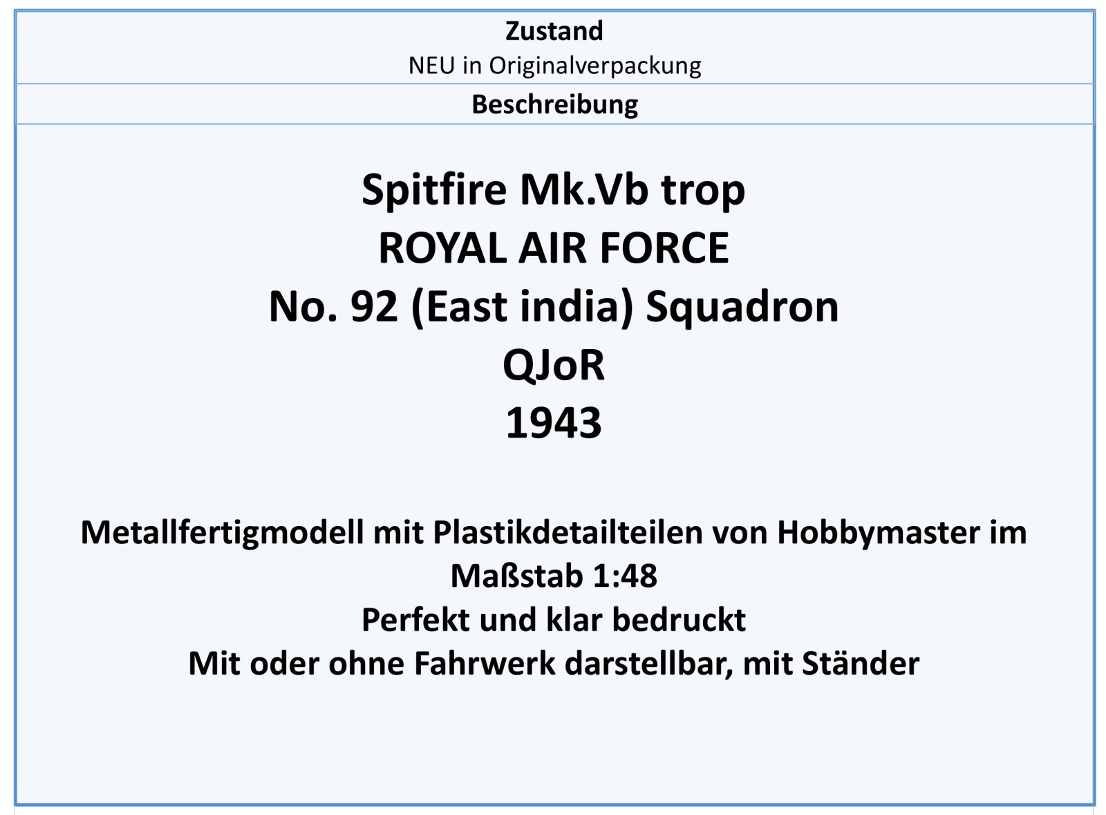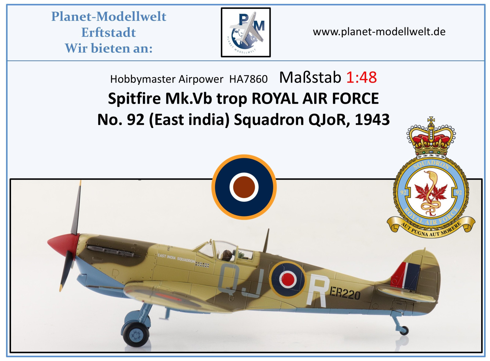 HA7860 Spitfire Mk.Vb trop RAF No.92 Squ. 1943,Hobbymaster 1:48 NEU 11/25