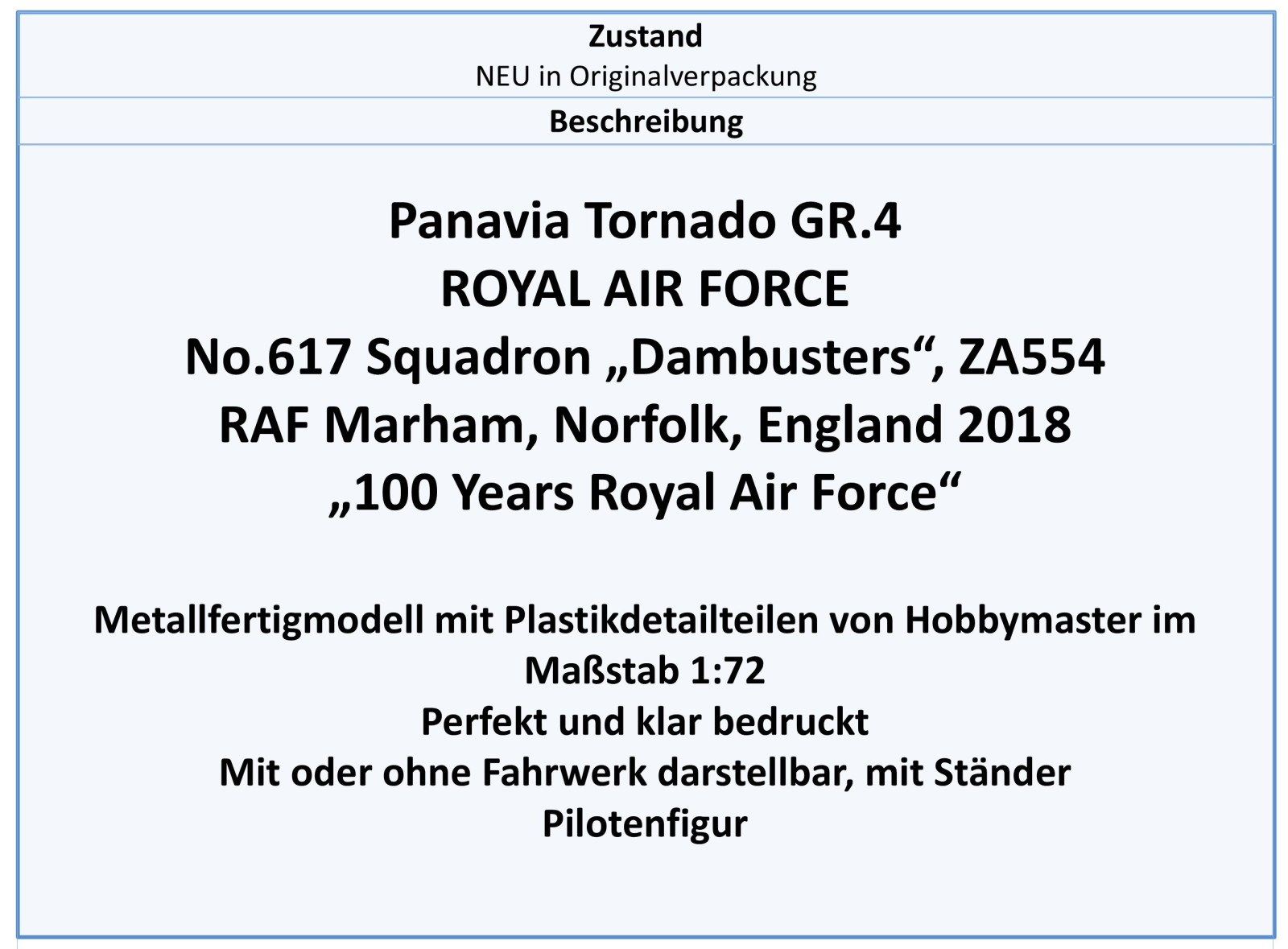 HA6727 Tornado GR4 RAF "Dambuster" "100 years RAF" Hobbymaster 1:72, NEU 11/25