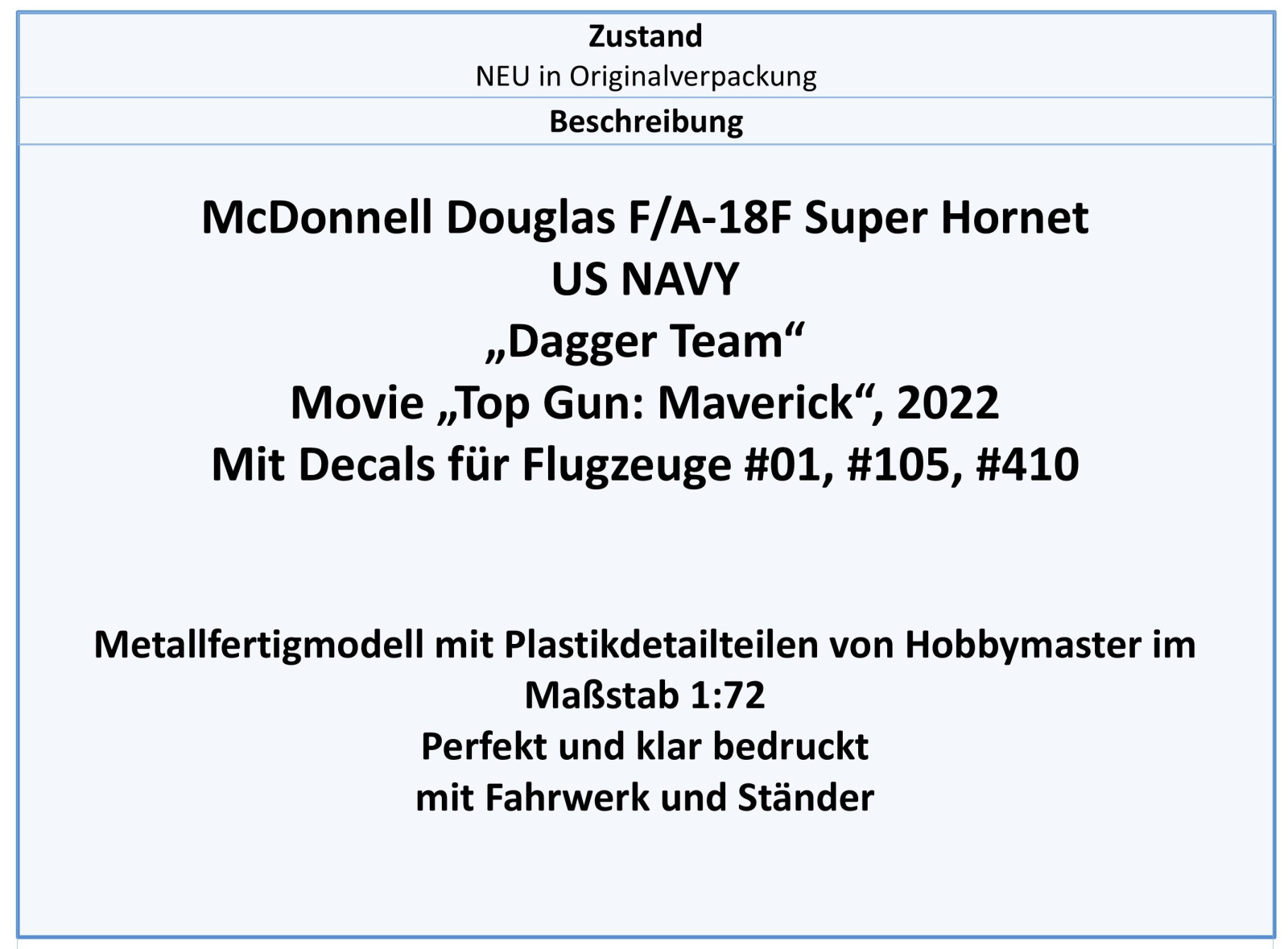 HA5140B F/A-18F Super Hornet US NAVY -Top Gun: Maverick-,Hobbymaster 1:72, NEU 11/2025 - Bild vergrößern