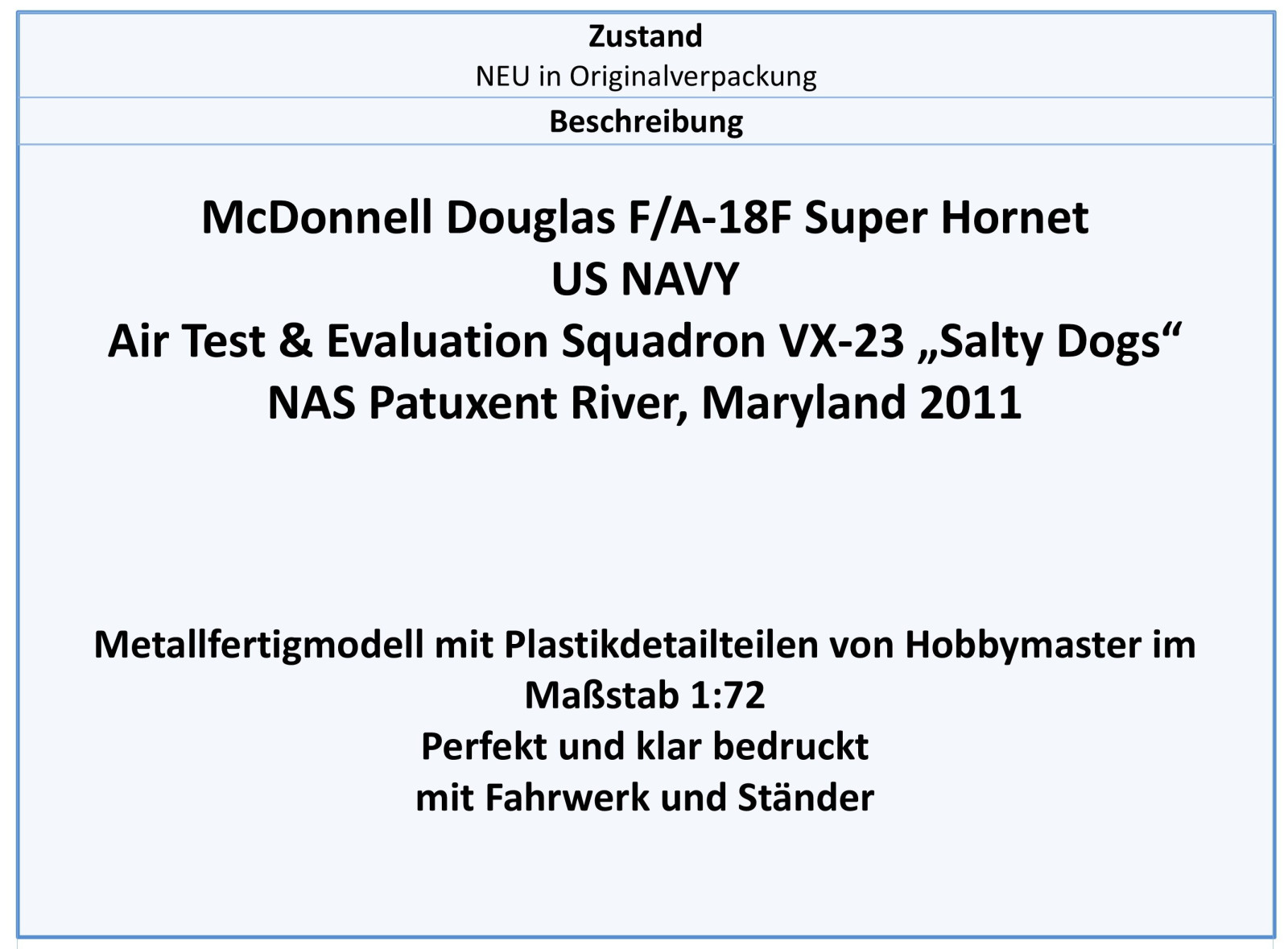 HA5142 F/A-18F Super Hornet US NAVY VX-23 -Salty Dogs-,Hobbymaster 1:72, NEU 11/2025 - Bild vergrößern