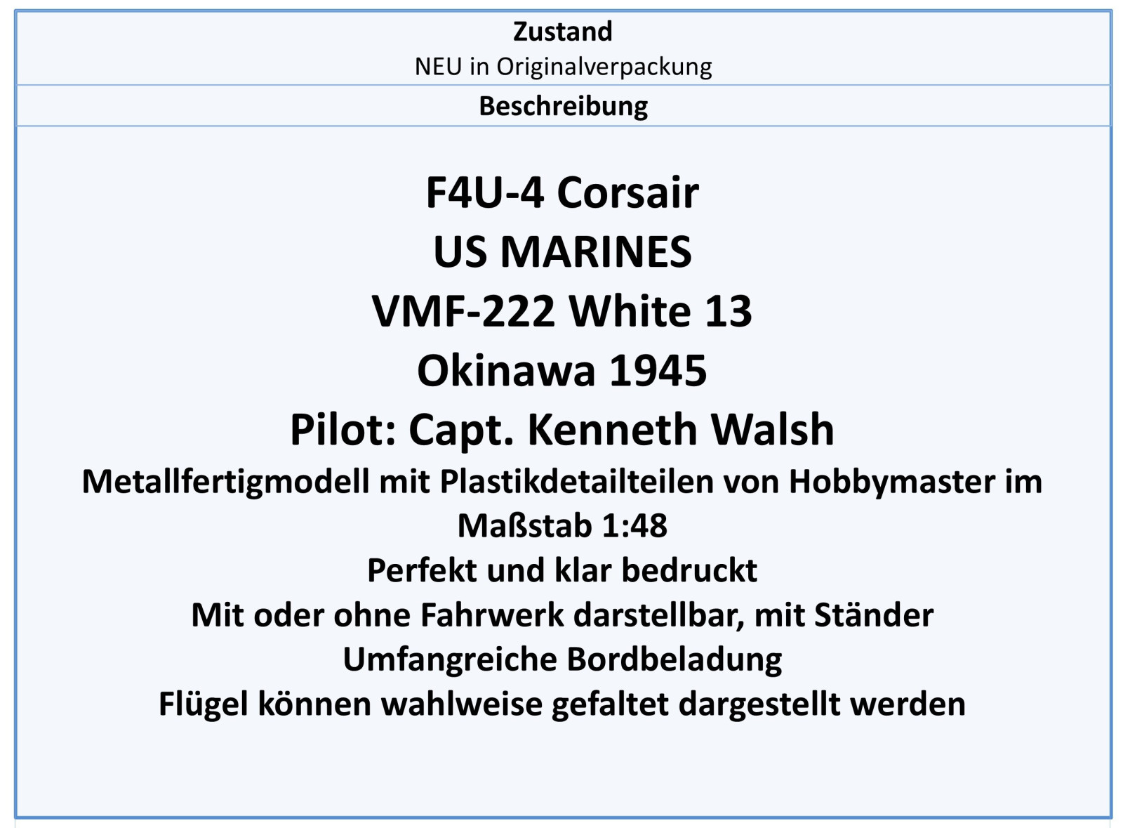 HA8226 F4U Corsair US MARINES VMF-222,Okinawa 1945,NEU 5/2025