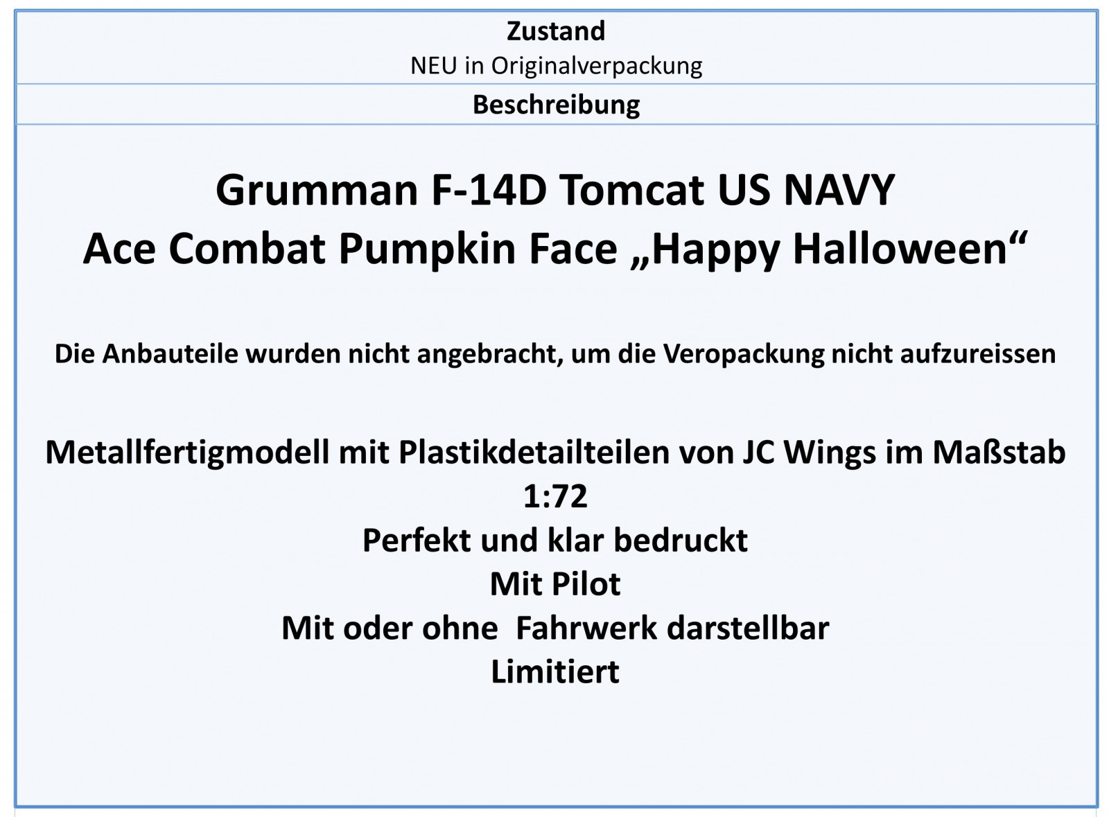 JCW-72-F14-011 F-14D Tomcat US NAVY Pumpkin Face -Happy Halloween-,JC Wings 1:72,NEU 6/23 - Bild vergrößern