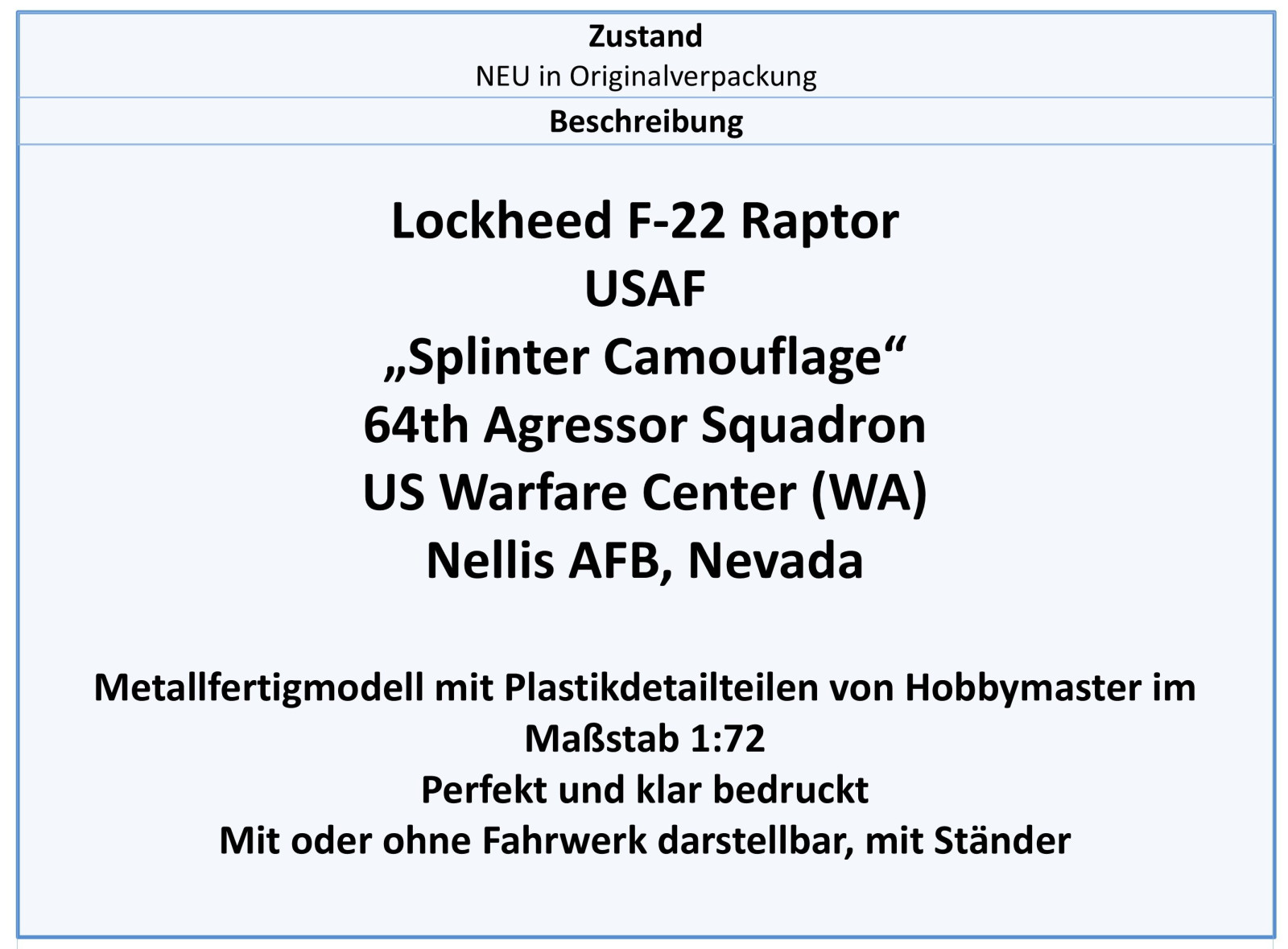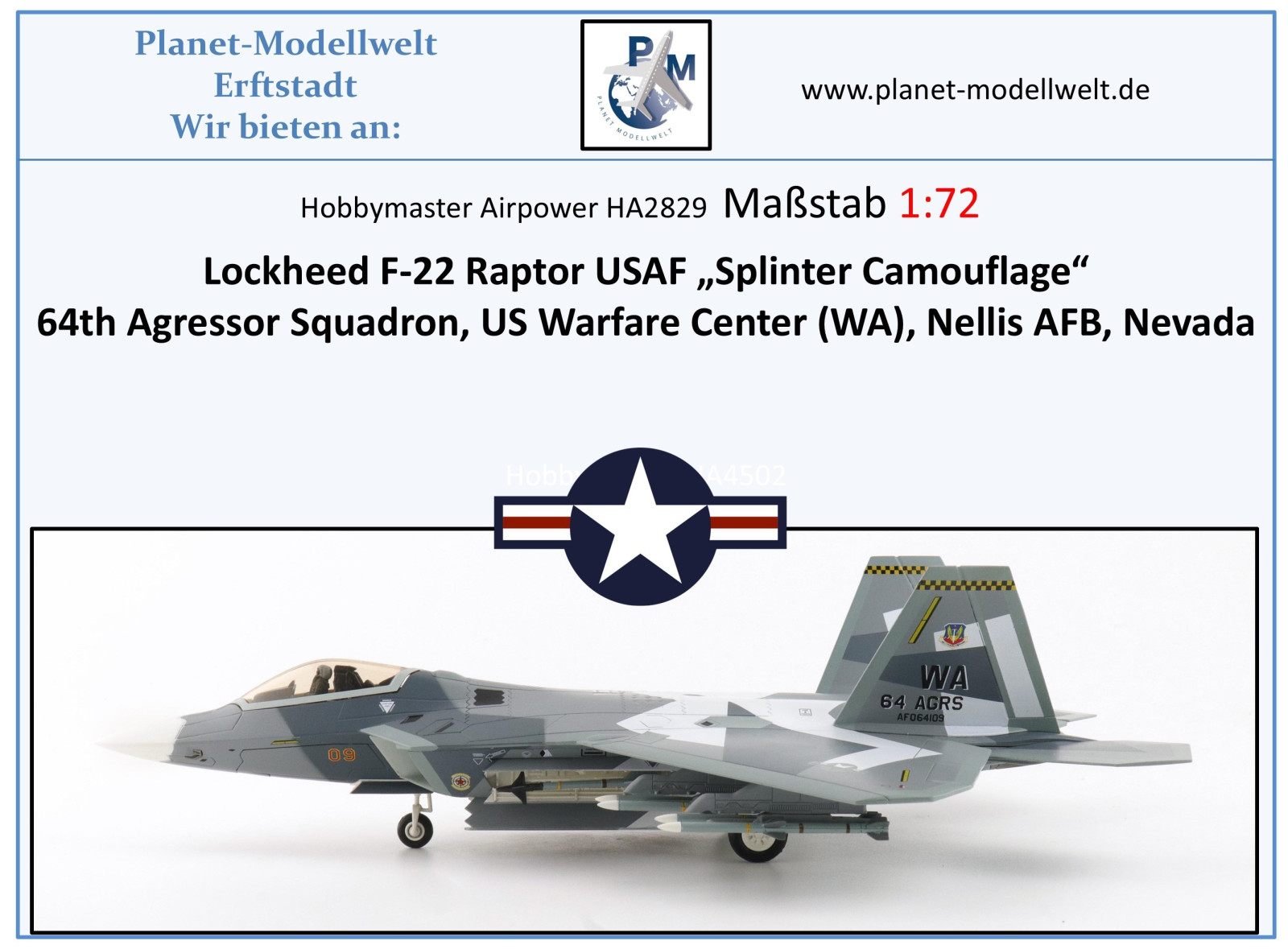 HA2831 F-22 Raptor USAF 64th AGRS Nellis AFB,Hobbymaster 1:72, NEU 2/2026