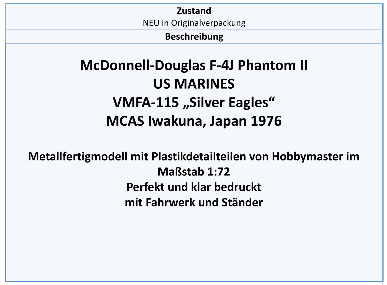 HA19078 F-4J Phantom II USMC VMFA-115 -Silver Eagles- 1976,Hobbymaster 1:72, 2/2026 - Bild vergrößern